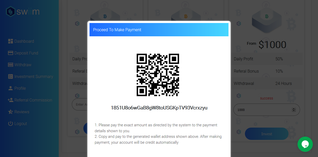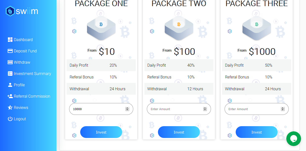 Choose any of the investment plans suitable to your budget and then make payment. Your account is instantly credited